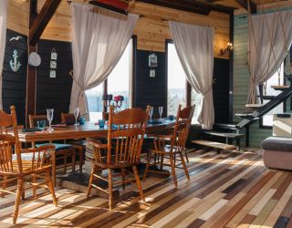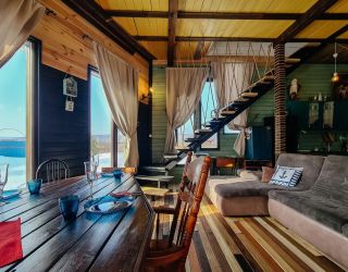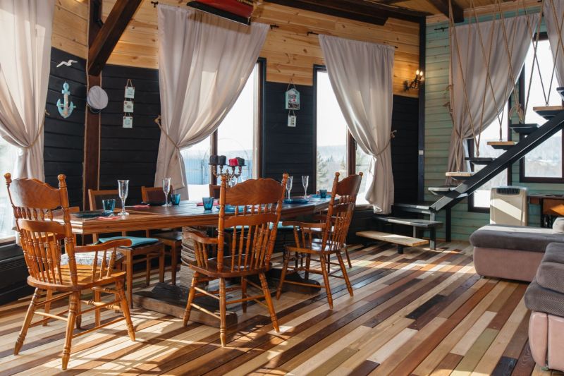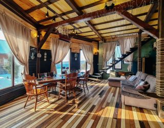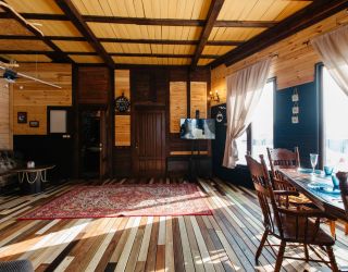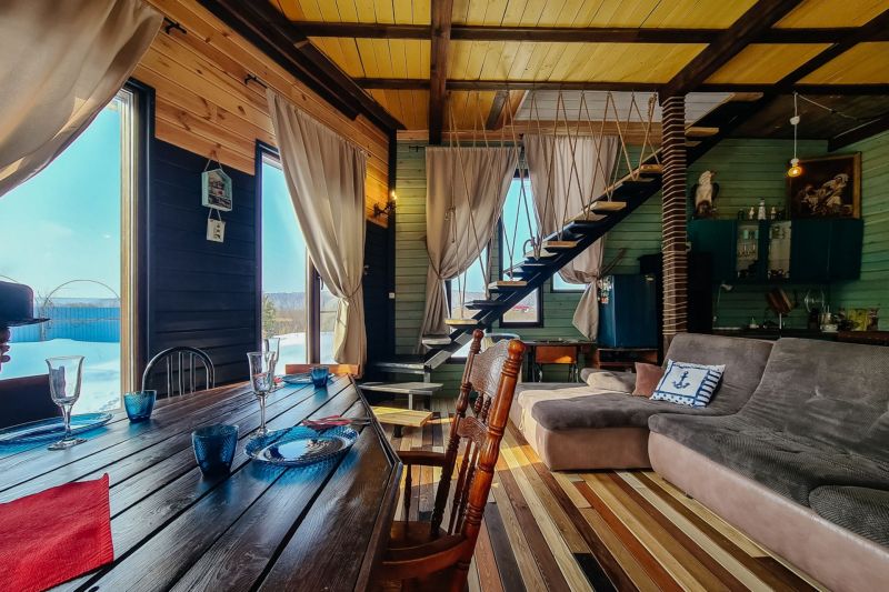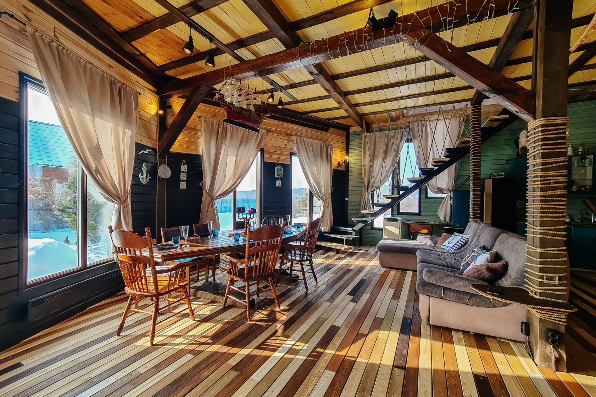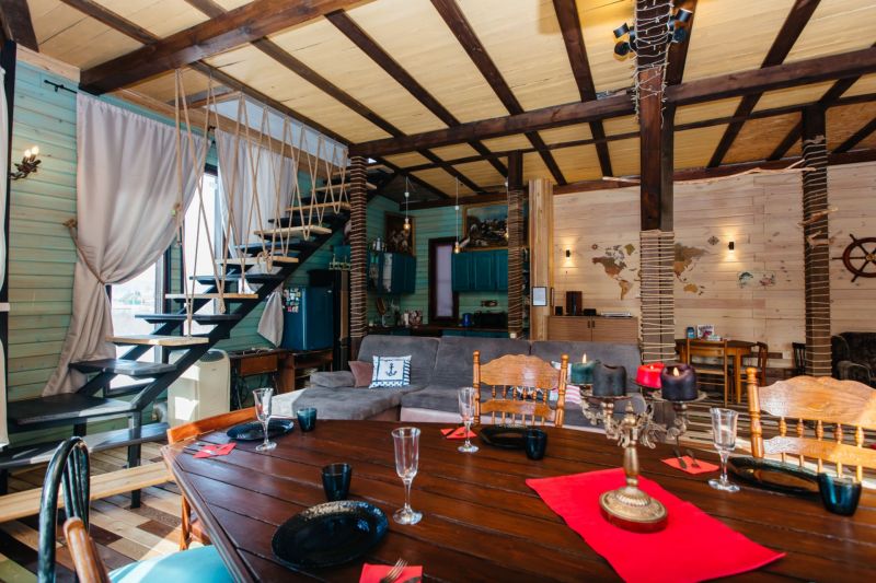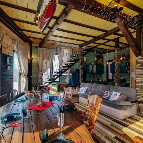 Небольшой двухэтажный коттедж – отличный выбор для отдыха в любое время года. Внутри – интерьеры, напоминающие морские каюты и палубы корабля, на первом этаже расположены столовая и кухня с электроплитой, духовкой и прочей необходимой техникой и посудой. Спальни разместились на втором этаже. В доме 2 санузла, оба оснащены душевыми кабинками и косметическими наборами для гостей. Среди удобств – стиральная машина, большой телевизор-ЖК в зоне отдыха и беспроводной интернет.