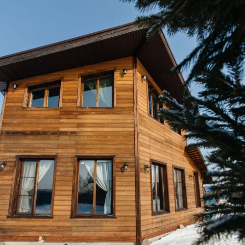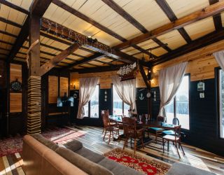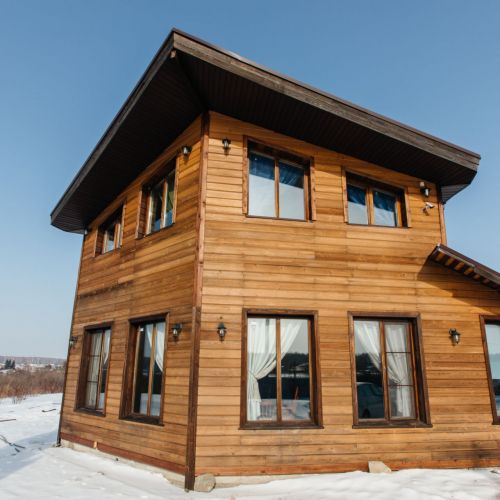 Коттедж находится в деревне Шмаково, расположенной в 30 километрах от Новосибирска. Рядом протекает река Иня, проходит Гуcинобpoдскoе шоссе, а дорога до центра города займет чуть больше получаса.