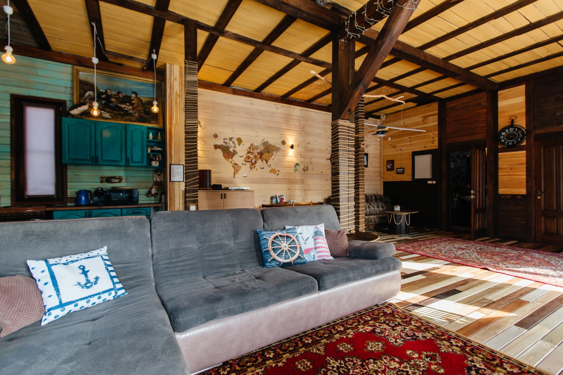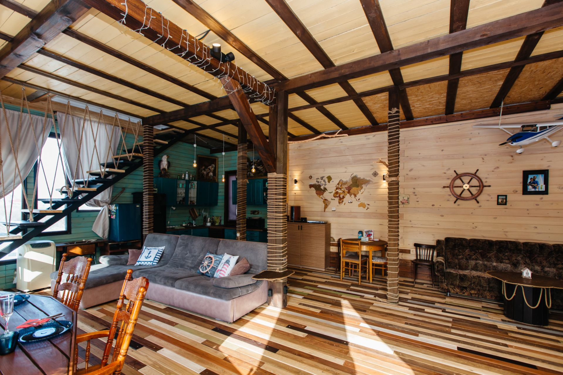 | Дом 5-местный с кораблем | 125 кв.м. | 6 чел. | Кухня, Мебель (диван раскладной, кровать двуспальная, кровать полутороспальная, кухонная мебель, сто... |